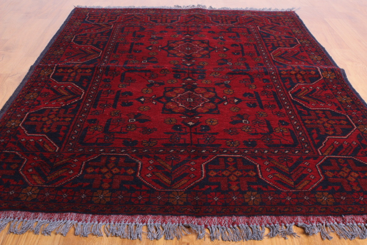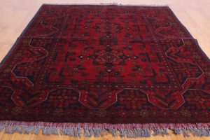 Andkhoy Bukhara: 160 X 100CM: Popularly known as Khal Mohammadi, the rug is one of the best examples available of its kind. It is a superb quality, super fine classic tribal rug from the Andkhoy region, home to the best quality tribal rugs coming out of today’s Afghanistan. The rich classic red colours, with shades of burnt orange, are unique to Andkhoy rugs. The dyes are 100% natural, mostly consisting of madder and indigo.