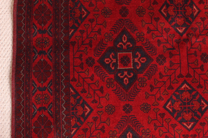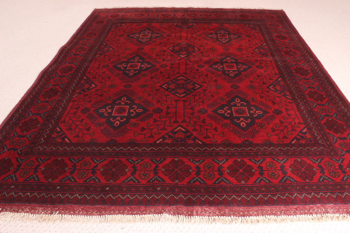Andkhoy Bargaah: 200 X 150cm: Popularly known as Khal Mohammadi, the rug is one of the best examples available of its kind. It is a superb quality, super fine classic tribal rug from the Andkhoy region, home to the best quality tribal rugs coming out of today’s Afghanistan. The rich classic red colours, with shades of burnt orange, are unique to Andkhoy rugs. The dyes are 100% natural, mostly consisting of madder and indigo.