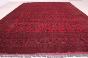 Andkhoy Bukhara: 350 x 250cm: Popularly known as Khal Mohammadi, the rug is one of the best examples available of its kind. It is a superb quality, super fine classic tribal rug from the Andkhoy region, home to the best quality tribal rugs coming out of today’s Afghanistan. The rich classic red colours, with shades of burnt orange, are unique to Andkhoy rugs. The dyes are 100% natural, mostly consisting of madder and indigo.