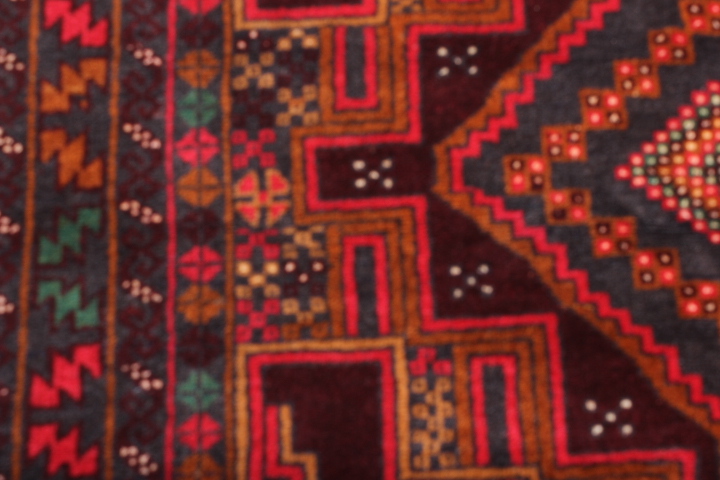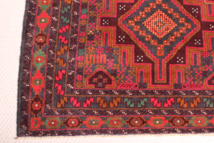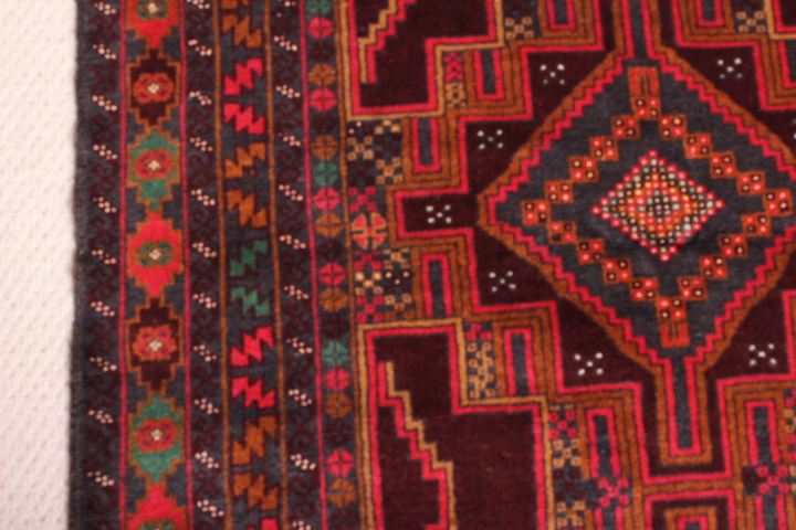 Afghan Nomadic Baluch: 210 X 125cm: An authentic, beautifully-woven, rich rug from the nomad tribes of Afghanistan. The rug was woven in the historic Herat region, bordering Iran, or ancient Persia.