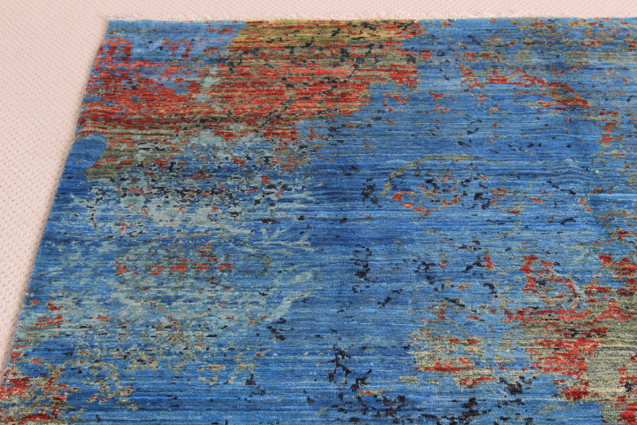 This rug enjoys what is known as the “abrash effect” or “marbled effect”. The technique involves spinning the wool yarn so tight by hand so that the dyes do not permeate the yarn evenly, creating an uneven, but beautiful natural-looking effect, making the rug a unique work of art.