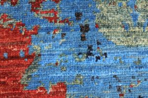 The rug combines unique rug making skills with painstakingly hand-spun Afghan wool and vegetable dyes to create a truly one-off hand-knotted rug.