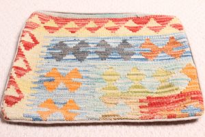 Chobi Cushion: 40Â x 40cm: This extremely beautiful Chobi Kilim Tribal Cushion, with a zip at the back, is from the Turkoman tribes of Maimana region of Faryab, Afghanistan. It is woven from 100% wool with vegetable dyes.