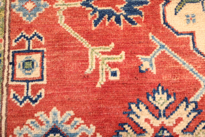 The designs incorporated in Ghazni rugs are mostly those from the ancient Caucus, hence, reflecting a strong Caucasian influence. Ghazni rugs incorporate vegetable dyes, and 100% hand-spun wool from the Ghazni region, known for the quality of its wool.