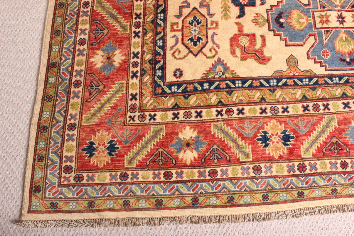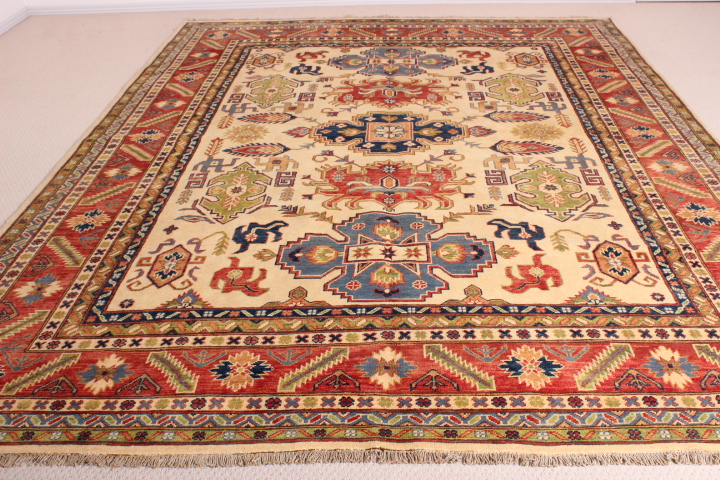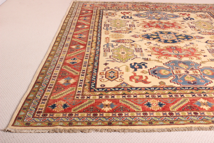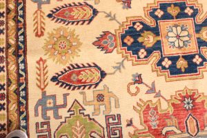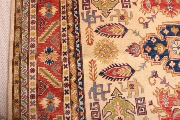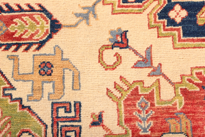 The designs incorporated in Ghazni rugs are mostly those from the ancient Caucus, hence, reflecting a strong Caucasian influence. Ghazni rugs incorporate vegetable dyes, and 100% hand-spun wool from the Ghazni region, known for the quality of its wool.