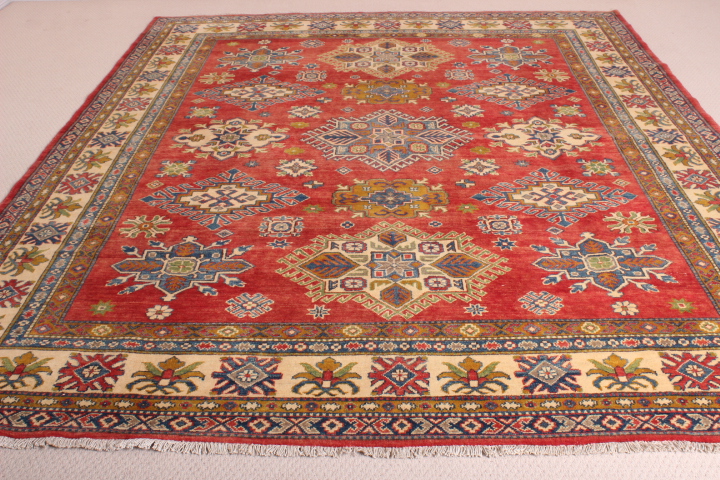 The designs incorporated in Ghazni rugs are mostly those from the ancient Caucus, hence, reflecting a strong Caucasian influence. Ghazni rugs incorporate vegetable dyes, and 100% hand-spun wool from the Ghazni region, known for the quality of its wool.