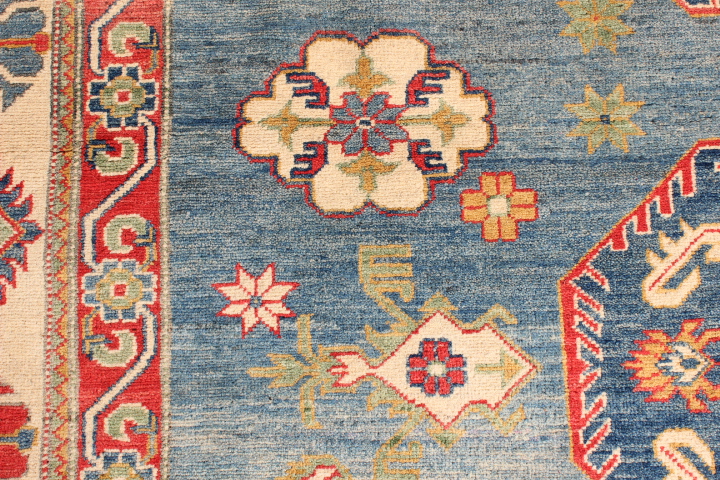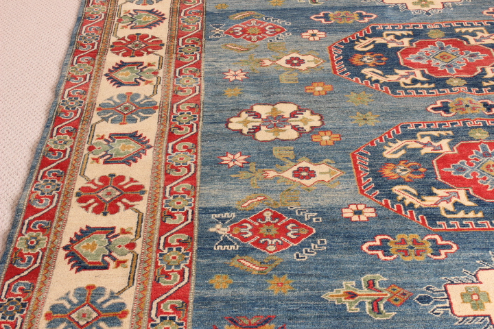 Afghan Kazak rugs use the best quality, painstakingly hand-spun Afghan wool, sourced from the central plains of Afghanistan. It incorporates vegetable dyes.