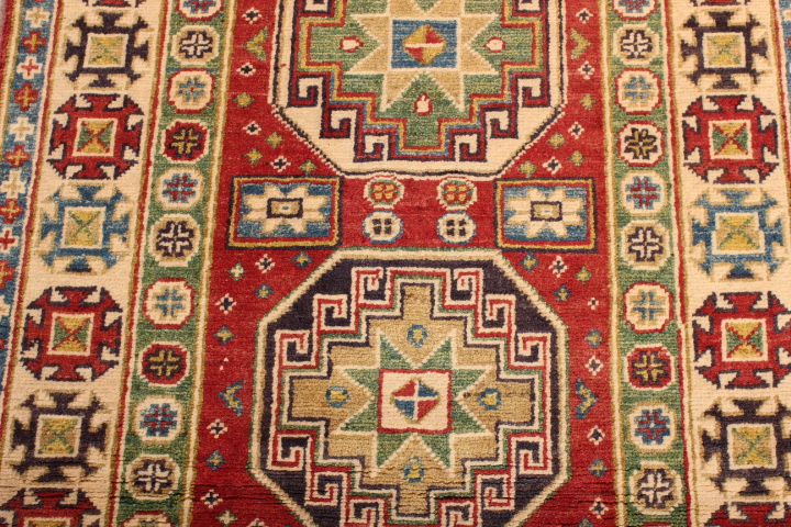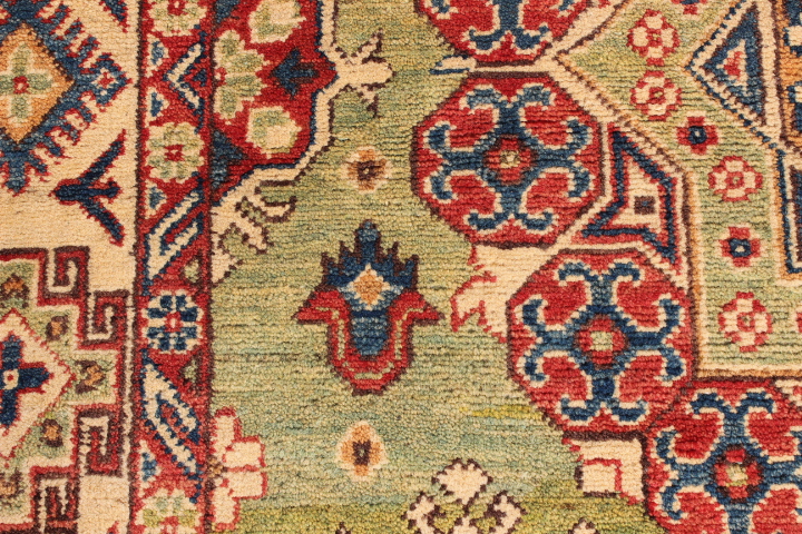 The designs incorporated in Ghazni rugs are mostly those from the ancient Caucus, hence, reflecting a strong Caucasian influence. Ghazni rugs incorporate vegetable dyes, and 100% hand-spun wool from the Ghazni region, known for the quality of its wool.