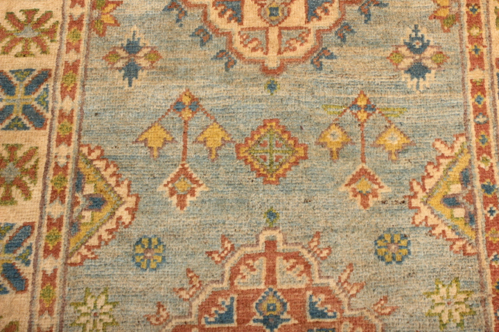 The designs incorporated in Ghazni rugs are mostly those from the ancient Caucus, hence, reflecting a strong Caucasian influence. Ghazni rugs incorporate vegetable dyes, and 100% hand-spun wool from the Ghazni region, known for the quality of its wool.