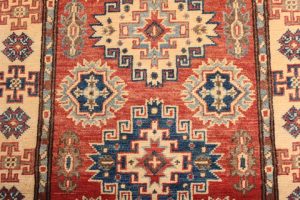 The designs incorporated in Ghazni rugs are mostly those from the ancient Caucus, hence, reflecting a strong Caucasian influence. Ghazni rugs incorporate vegetable dyes, and 100% hand-spun wool from the Ghazni region, known for the quality of its wool.