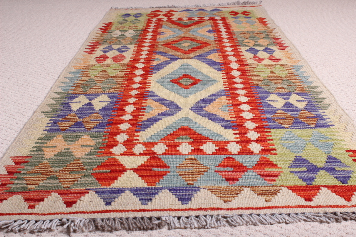 Kilim: 160 x 70cm: This is an extremely beautiful, intricately-woven, hand-woven Kilim from the Turkoman tribes of Maimana region of Faryab, Afghanistan. Representing a timeless design from the ancient Caucus, the Kilim is known as Chobi, short for Chobrang, or Choubi Kilim.
