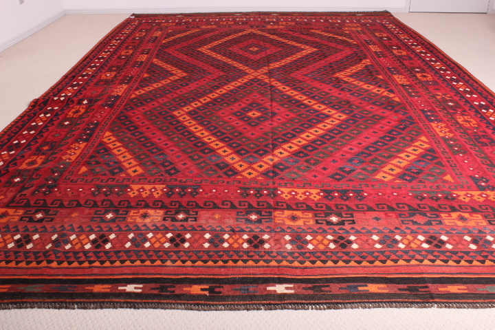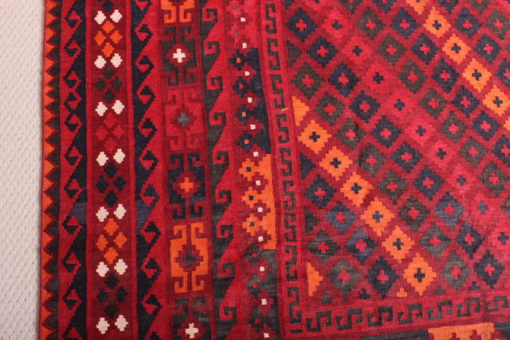 The Kilim is known as Maimana Kilim. This rug is known for the popularity of its design, and woven from 100% wool and incorporates vegetable dyes.