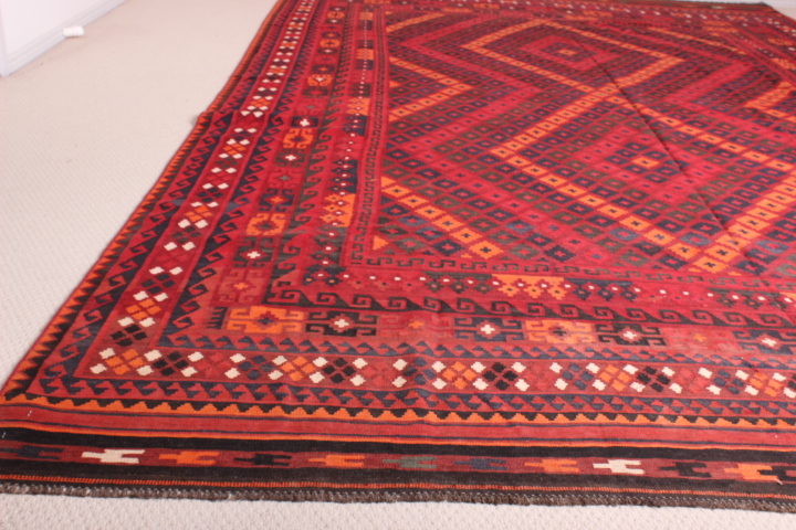 Kilim: 415 x 270cm: A rare, extremely beautiful, intricately-woven, hand-woven Kilim from the Turkoman tribes of Maimana region of Faryab, Afghanistan. This is an incredibly beautiful example of the world-famous Maimana Kilims from Afghanistan. Representing a timeless design from the ancient Caucus, the Kilim is one of the best of it’s kind!
