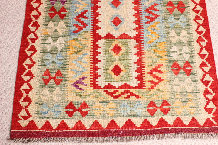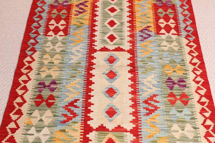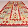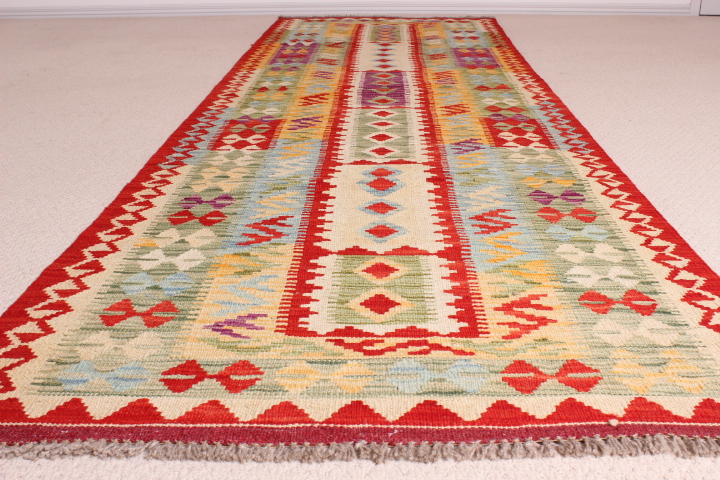 Kilim: 300 x 84cm:Â This is an extremely beautiful, intricately-woven, hand-woven Kilim from the Turkoman tribes of Maimana region of Faryab, Afghanistan. Representing a timeless design from the ancient Caucus, the Kilim is known as Chobi, short for Chobrang, or Choubi Kilim.