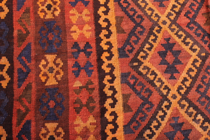 The Kilim is known as Maimana Kilim. This rug is known for the popularity of its design, and woven from 100% wool and incorporates vegetable dyes.