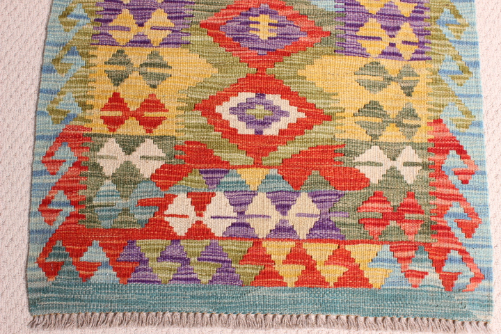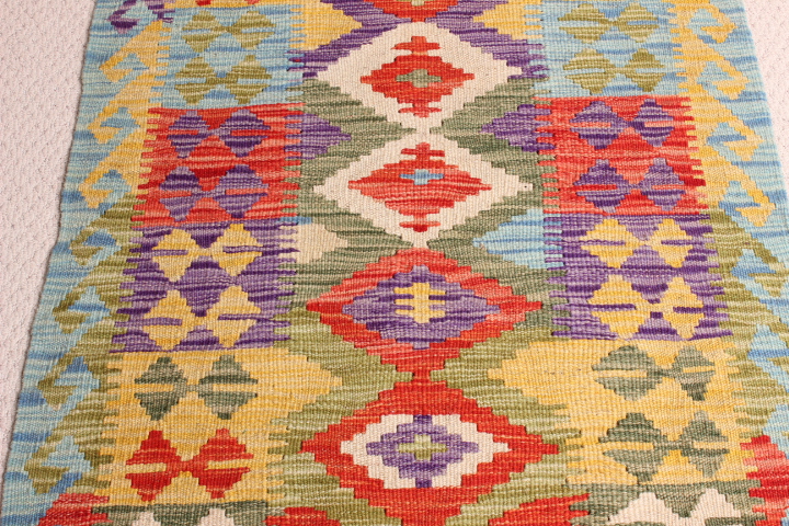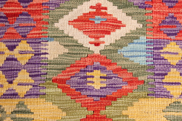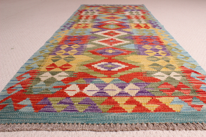 Kilim: 200 X 72CM: This is an extremely beautiful, intricately-woven, hand-woven Kilim from the Turkoman tribes of Maimana region of Faryab, Afghanistan. Representing a timeless design from the ancient Caucus, the Kilim is known as Chobi, short for Chobrang, or Choubi Kilim.