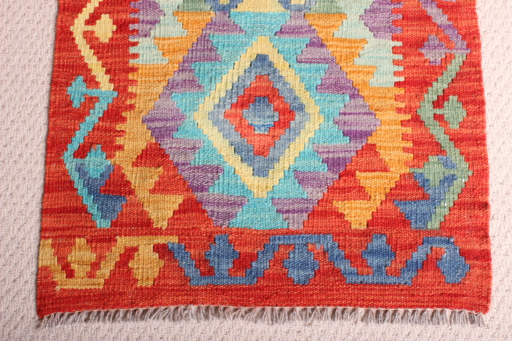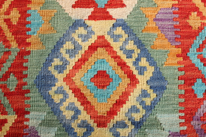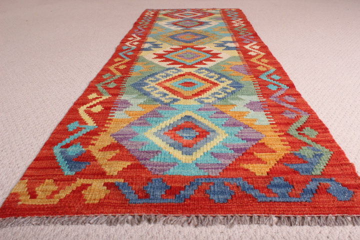 Kilim: 210 X 63CM : This is an extremely beautiful, intricately-woven, hand-woven Kilim from the Turkoman tribes of Maimana region of Faryab, Afghanistan. Representing a timeless design from the ancient Caucus, the Kilim is known as Chobi, short for Chobrang, or Choubi Kilim.