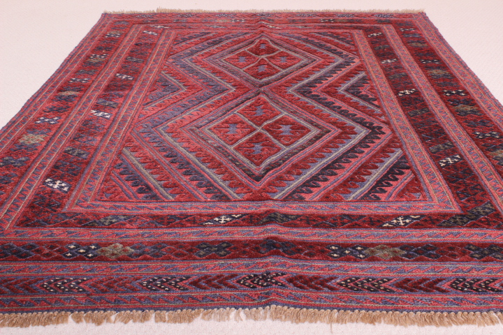 This beautiful, intricately-woven nomadic Afghan rug is known as Moshwani Gazak, and is one of the rarest types of rug weaves in the world.Â