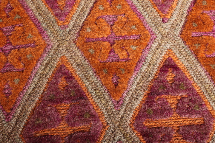 The rug is a combination of pile and flat weave from the Moshwani Baluch nomad tribes of historic Herat in Afghanistan. It’s known for the uniqueness of its design, and is woven from 100% wool, incorporating natural dyes. Herat was a key art and poetry centre of the old Persian civilization. Every Baluch rug is a unique piece and a work of art.