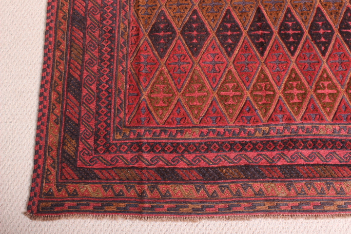 This beautiful, intricately-woven nomadic Afghan rug is known as Moshwani Gazak, and is one of the rarest types of rug weaves in the world.Â
