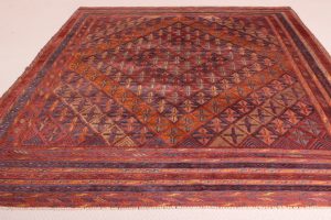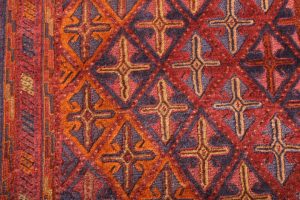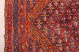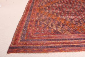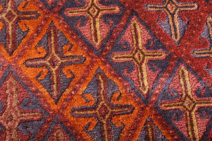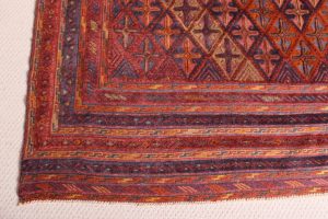 The rug is a combination of pile and flat weave from the Moshwani Baluch nomad tribes of historic Herat in Afghanistan. It’s known for the uniqueness of its design, and is woven from 100% wool, incorporating natural dyes. Herat was a key art and poetry centre of the old Persian civilization. Every Baluch rug is a unique piece and a work of art.