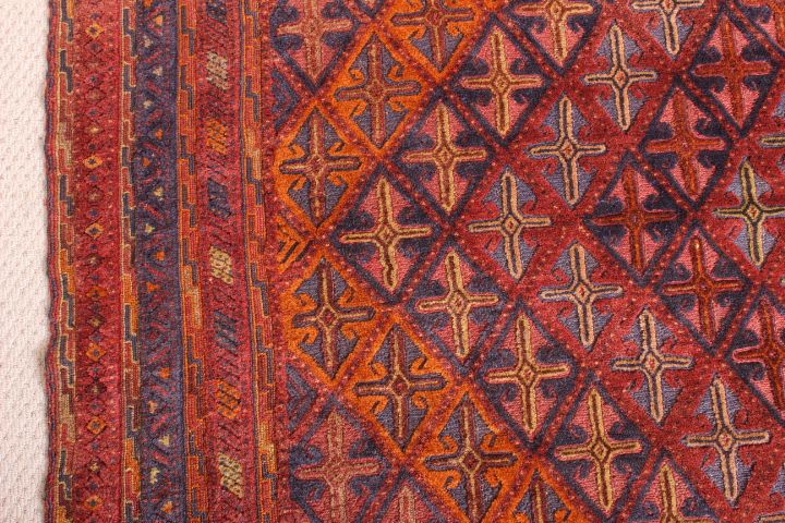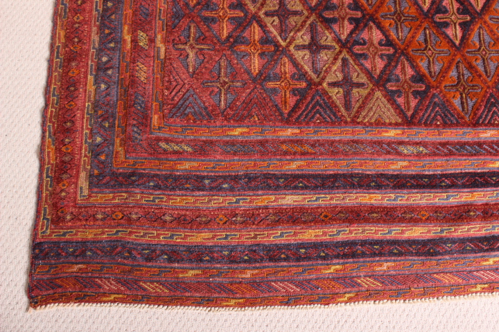 This beautiful, intricately-woven nomadic Afghan rug is known as Moshwani Gazak, and is one of the rarest types of rug weaves in the world.Â