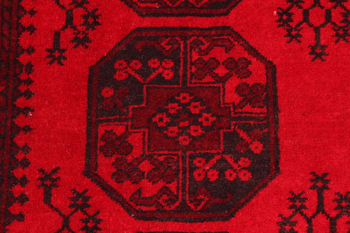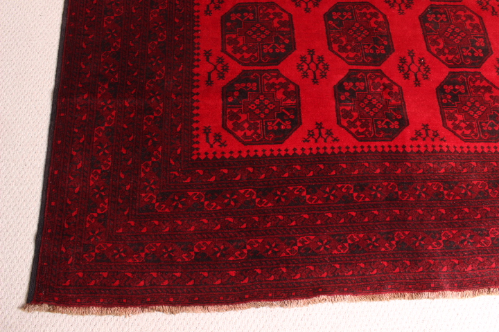 The rug was made in the pre-1979 era and is in excellent condition for its age. The rug was woven in Faryab region of Afghanistan, on the border with Turkmenistan, and is an important rug-producing centre of the country. The rug is woven from 100% wool, incorporating natural dyes.