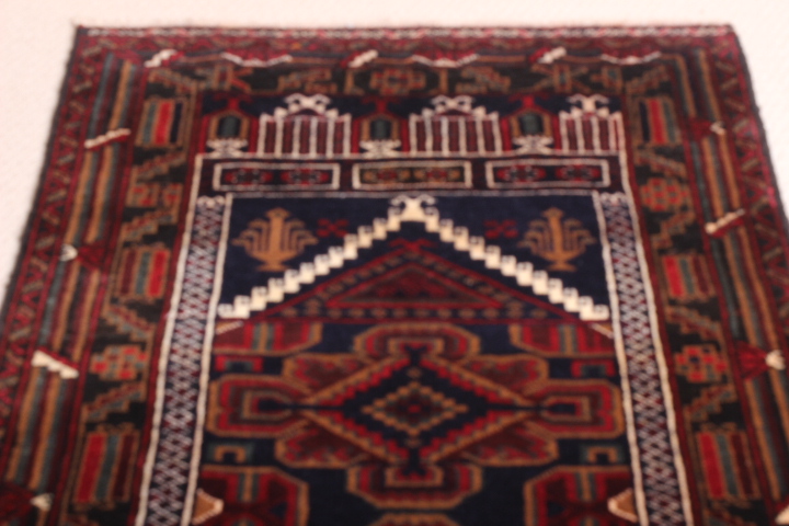Baluch Prayer Rug: 150 x 90cm: Known as Jainamaz, this beautiful, authentic rich Prayer Rug comes from the historic Herat region of Afghanistan, bordering Iran, or ancient Persia. Herat was a key art and poetry centre of the old Persian civilization.