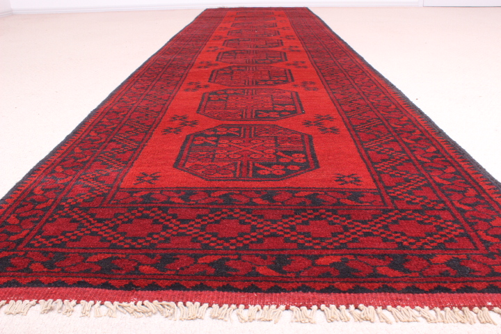 It comes from the Aqcha region of Mazar-e-Sharif in northern Afghanistan, which is an important rug trade centre, just south of the former Soviet state of Uzbekistan. The rug is woven from 100% wool, incorporating natural dyes.
