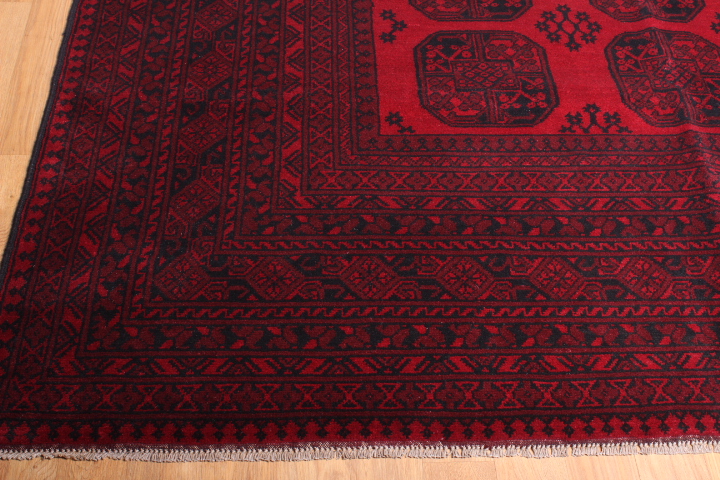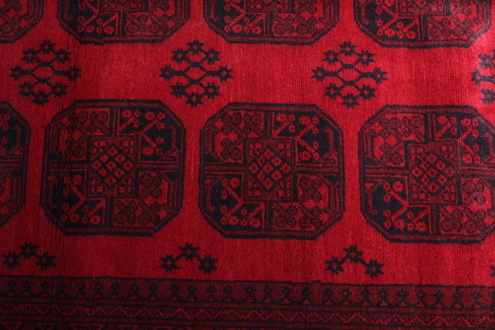 It comes from the Aqcha region of Mazar-e-Sharif in northern Afghanistan, which is an important rug trade centre, just south of the former Soviet state of Uzbekistan. The rug is woven from 100% wool, incorporating natural dyes.